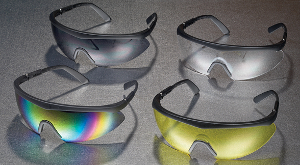 Mutual Shark protective glasses have a single panoramic lens design and offer superior frontal and peripheral protection. The Shark offers ultimate hazard protection with a full range of view and 7-base curve design. Meets or exceeds all ANSI safety standards including Z87.1-1989.